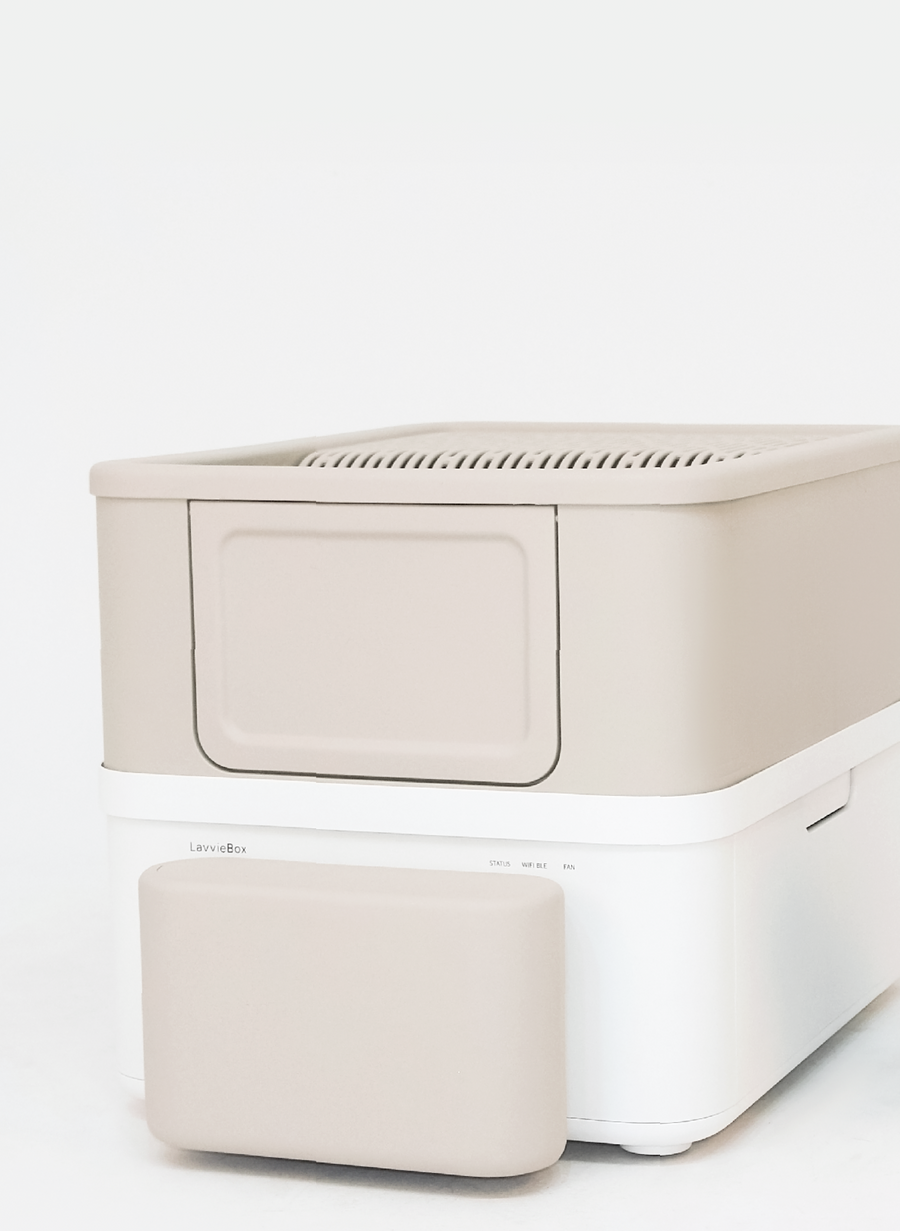 Lavvie D’ODEUR is a deodorizer for LavvieBot S and has a much stronger absorption power than normal charcoal items. It prevents odor/humidity/harmful gas from building up. Additionally, the edge of the waste drawer is made of silicone to minimize waste odor from escaping.