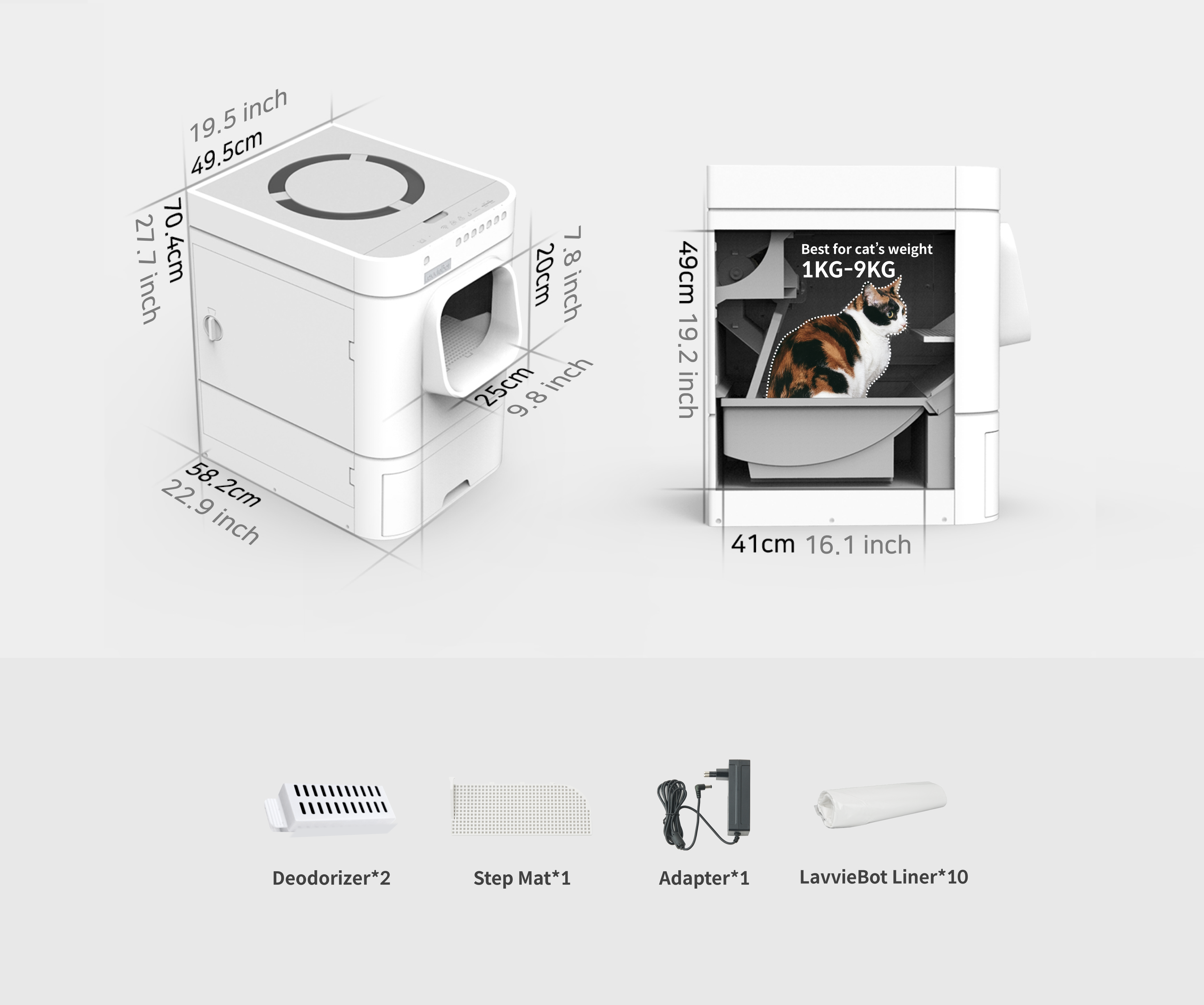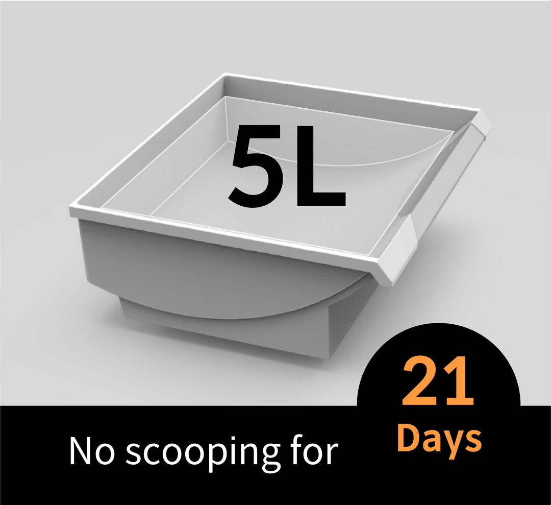 LavvieBot S has a special rake-rotating mechanism that scoops out clumps and wastes effectively. Users with one cat only needs to clean it once every 2 to 3 weeks.
